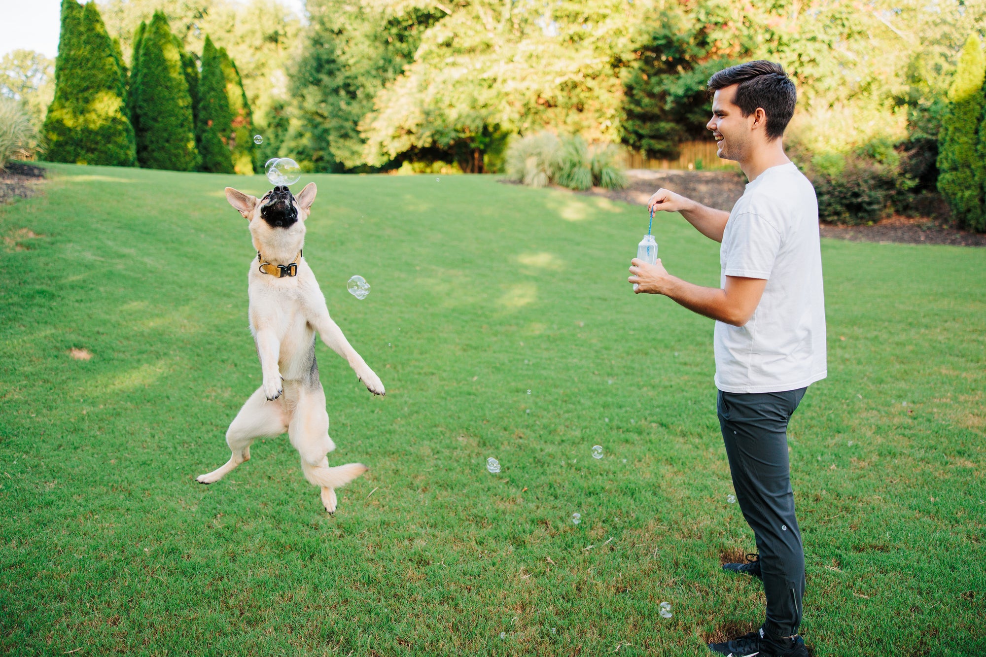 Rain or shine Barkin' Good Bubbles is a quick and easy way to tire out your dog in 15 minutes even during the zoomiest of times.